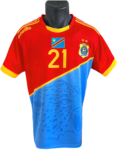 This jersey from Irish manufacturer O'Neills makes it easy to see why the DR Congo team is nicknamed the “Leopards,” considering that a huge leopard head takes up almost half of the shirt.