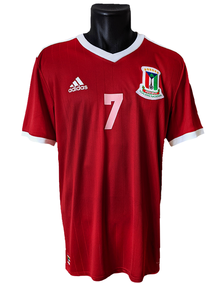 This and many other of my Equatorial Guinea shirts come from president Obiang’s personal outfitter! Yes, I randomly came in contact with the woman that makes the presidential attire and also happened to be responsible for the Nzalang Nacional’s football kits (at least until the federation made a deal with new manufacturer Erreà).