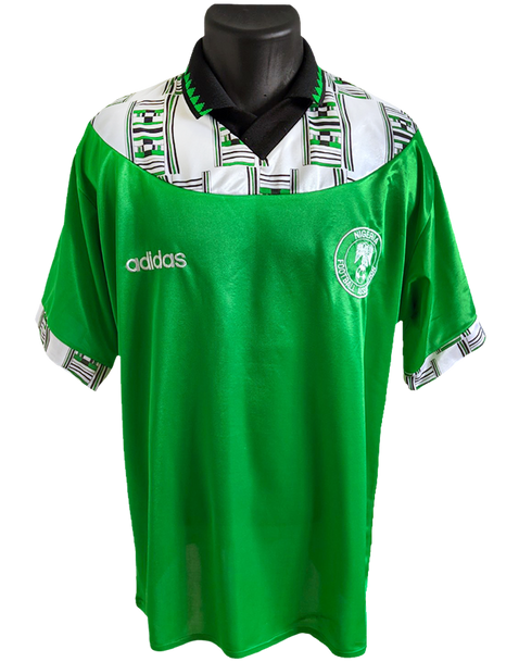 NIGERIAWORLDSHIRTS29. Apr. 20211 Min. LesezeitAktualisiert: 22. Juni 2024Home 1994/95Manufacturer: AdidasSource: eBay Super Eagles star Jay-Jay Okocha during the 1994 World Cup......and when he humiliated Oliver Kahn in 1993.