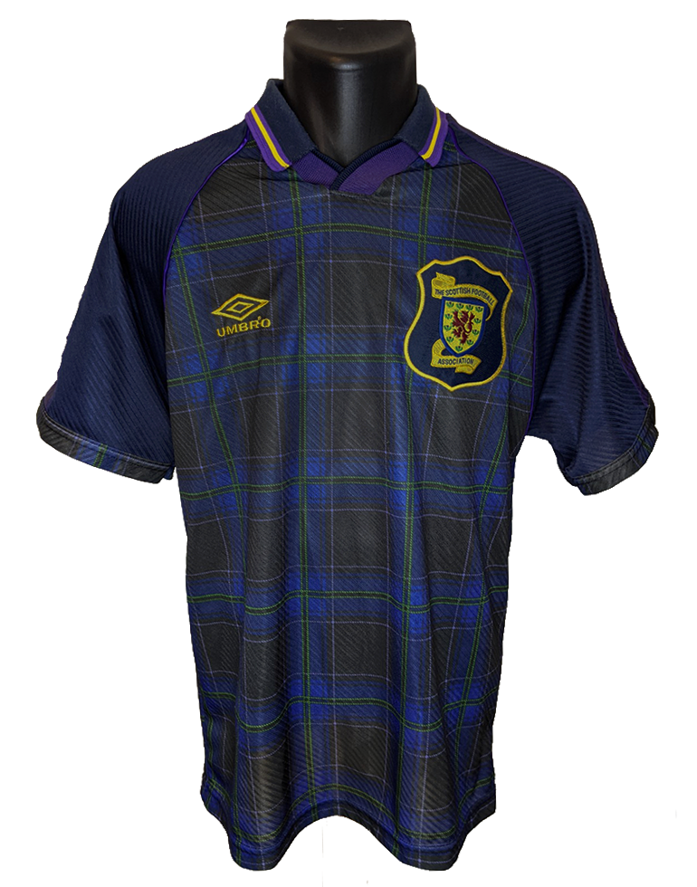 SCOTLANDWORLDSHIRTS25. Dez. 20191 Min. LesezeitAktualisiert: 26. Juni 2024Home 1996/98Manufacturer: UmbroSource: eBay Gary McAllister and Paul Gascoigne during the 1996 "Battle of the Brits"
